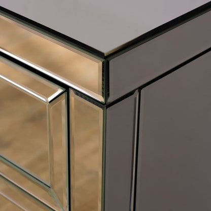 The beautiful and glamorous Valencia range of bedroom furniture will be a stylish and elegant addition to any bedroom. The whole range is superbly constructed from an MDF frame to give it a very strong and sturdy feel. The front, the sides and the legs of all items in the collection are covered with mirror giving a beautiful reflection of the furnishing and colour of your room.